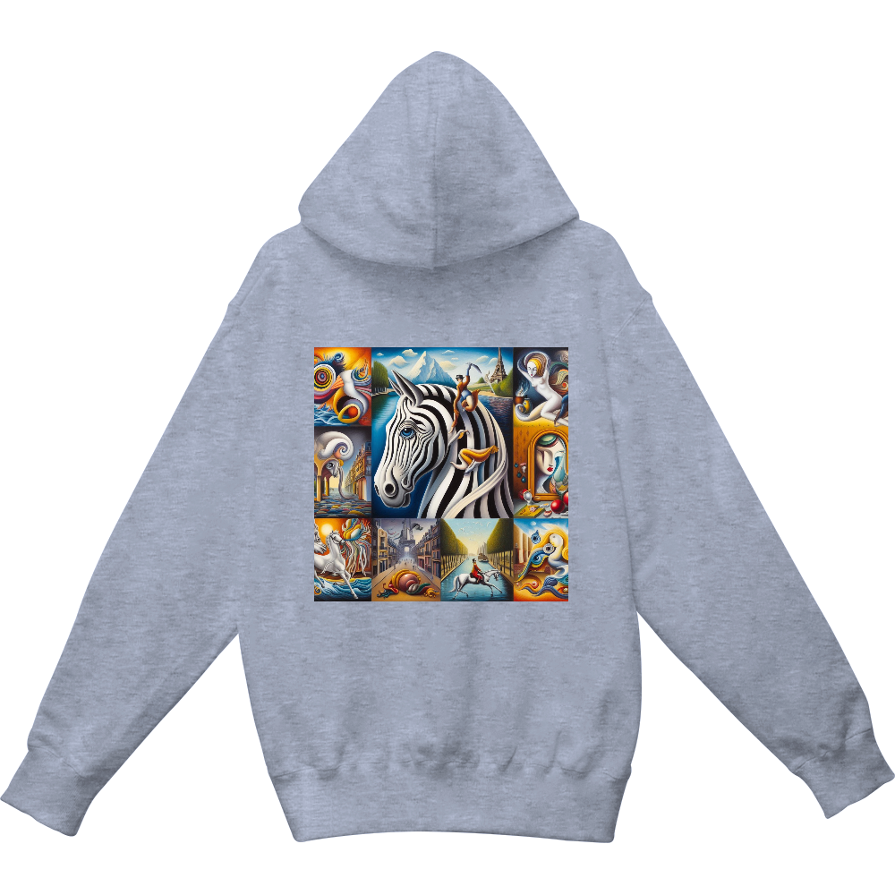 フロントにはシンプルなブランド名のロゴが施され、バックにはアーティスティックなデザインが広がります